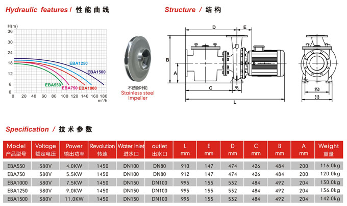 静音,低转速,大流量的不锈钢水泵 5.5HP~15HP